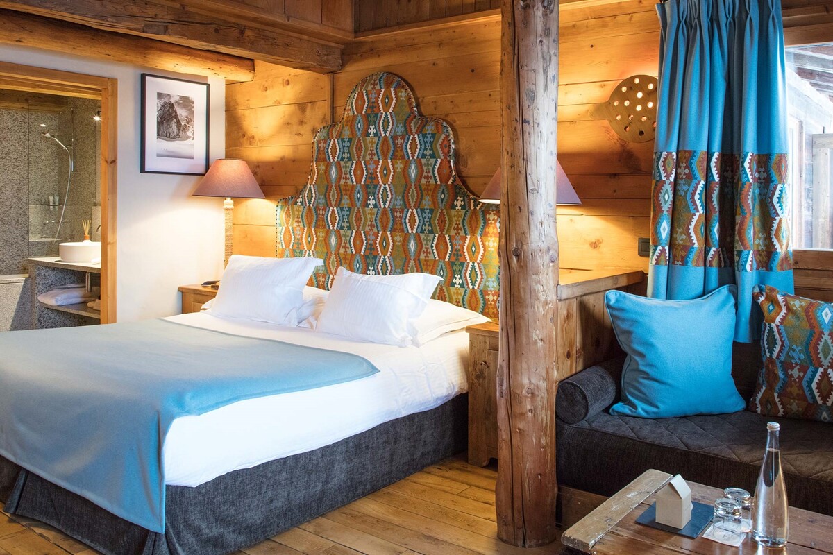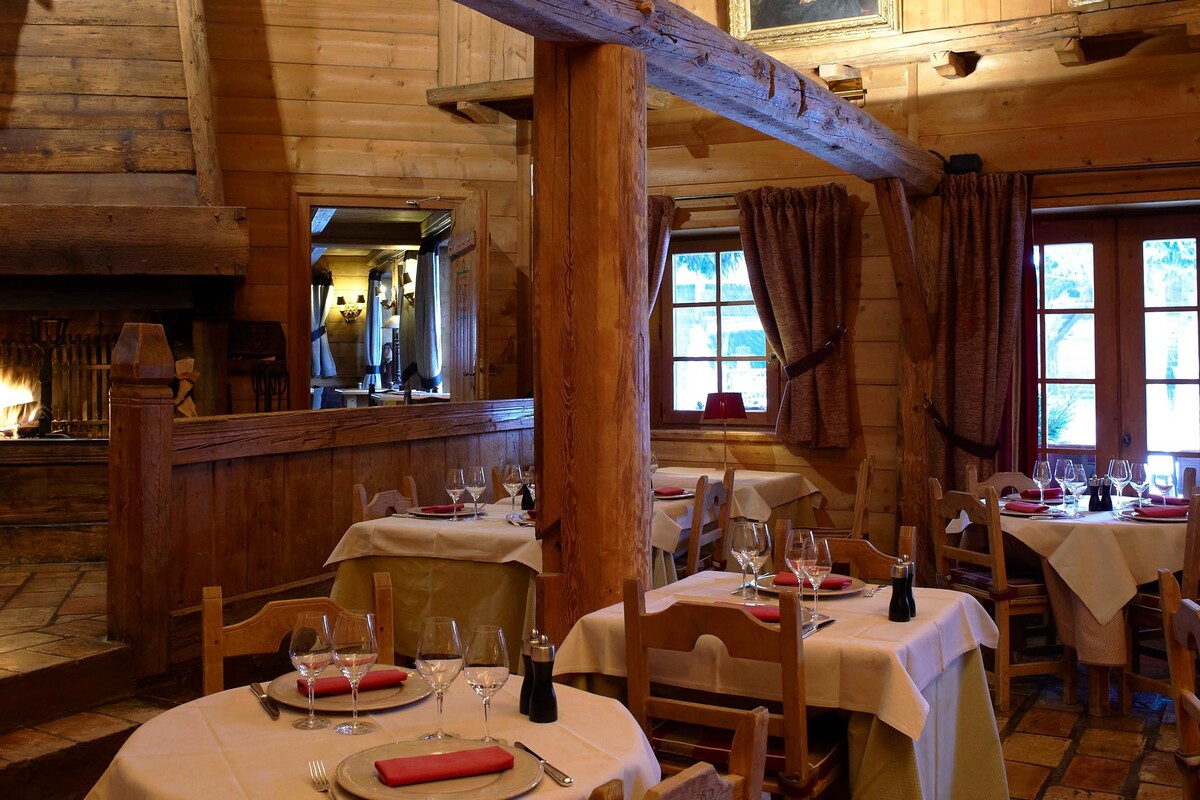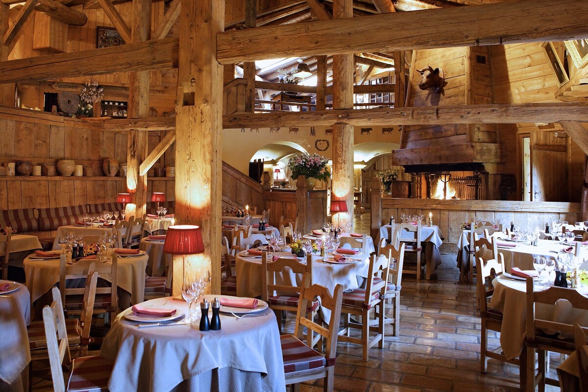 Located just outside the village centre, Les Fermes de Marie consists of a small hamlet of 8 chalets built to recreate the atmosphere of an authentic Savoyard village. This gem of a hotel has various room types - most Club bedrooms (the standard category) have a balcony, and all have wood-panelled walls, crisp sateen striped sheets, and subdued plaid upholstery. Pricier bedrooms-similarly decorated, but with fancier quilts-include lounges, while other larger accommodations that sleep three to four people make this place popular with families Wi-Fi is available throughout the property. The hotel has 4 great restaurants, including a traditional dining room, a rotisserie, its own high altitude mountain restaurant called L' Alpage du Pre Rosset reserved exclusively for hotel guests, and finally a restaurant devoted entirely to cheese. Guests can also have dinner at Le Lodge Park, the sister hotel.