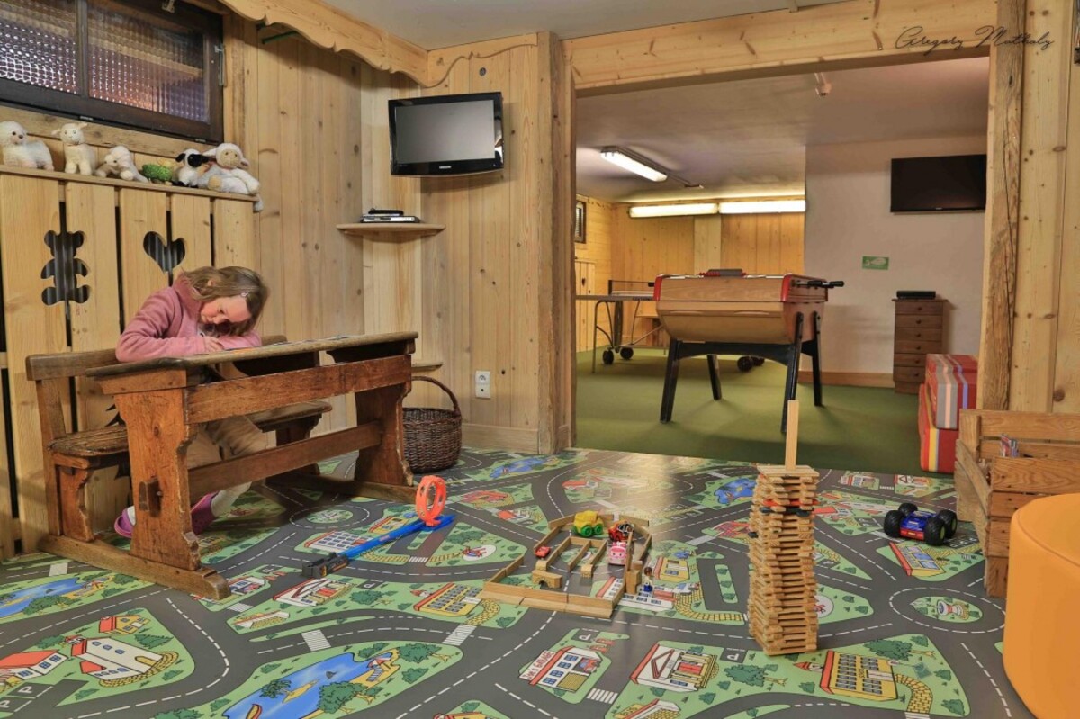 Heated outdoor swimming pool, outdoor barrel sauna and steam room at the poolside and treatment room and gym inside. Games room for children with table-tennis, table football, outdoor board games and Playmobil® toys - everything you could imagine for your children to have fun.