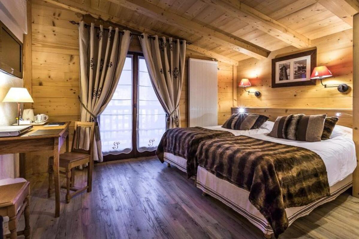 Most of the 19 rooms are twins (doubles on request) and some are family duplex rooms taking two adults and up to two children on a mezzanine level. The half board meal plan gives you 6 dinners and 1 lunch (it's easy to ski back to the hotel during the day).