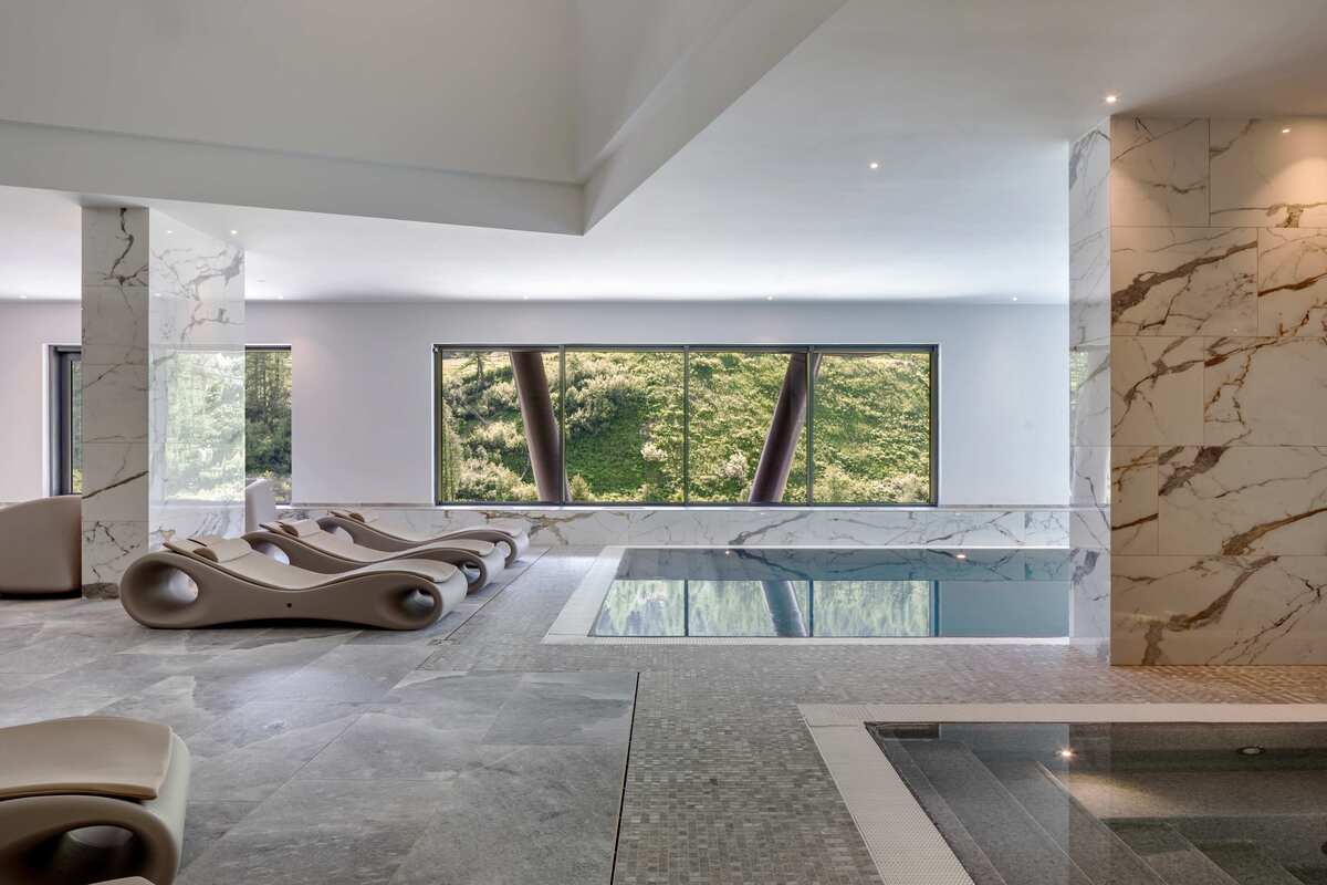 The impressive wellness centre features an indoor pool, gym, and full-service spa for restorative treatments. The hotel also has its own ski rental shop.