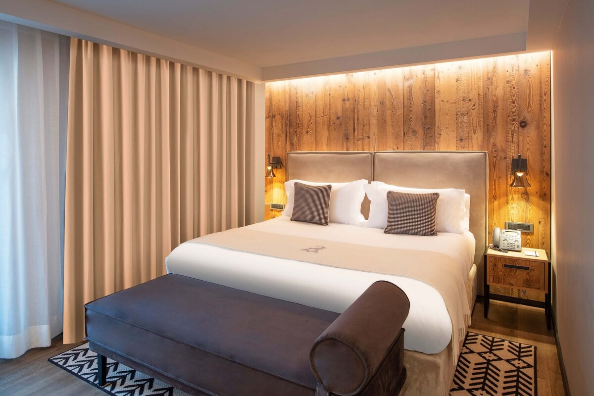 Apart from being fully eco-friendly the hotel has been designed using a colour palette of warm and welcoming tones. It follows the current trend for the modern alpine aesthetic with large windows framing spectacular mountain views. In addition to 4 suites, 15 junior suites, 47 deluxe and 14 superior rooms there is a luxury spa and wellness centre, a chic bar and two restaurants. There is also the separate La Lodge which is located directly on the slopes.