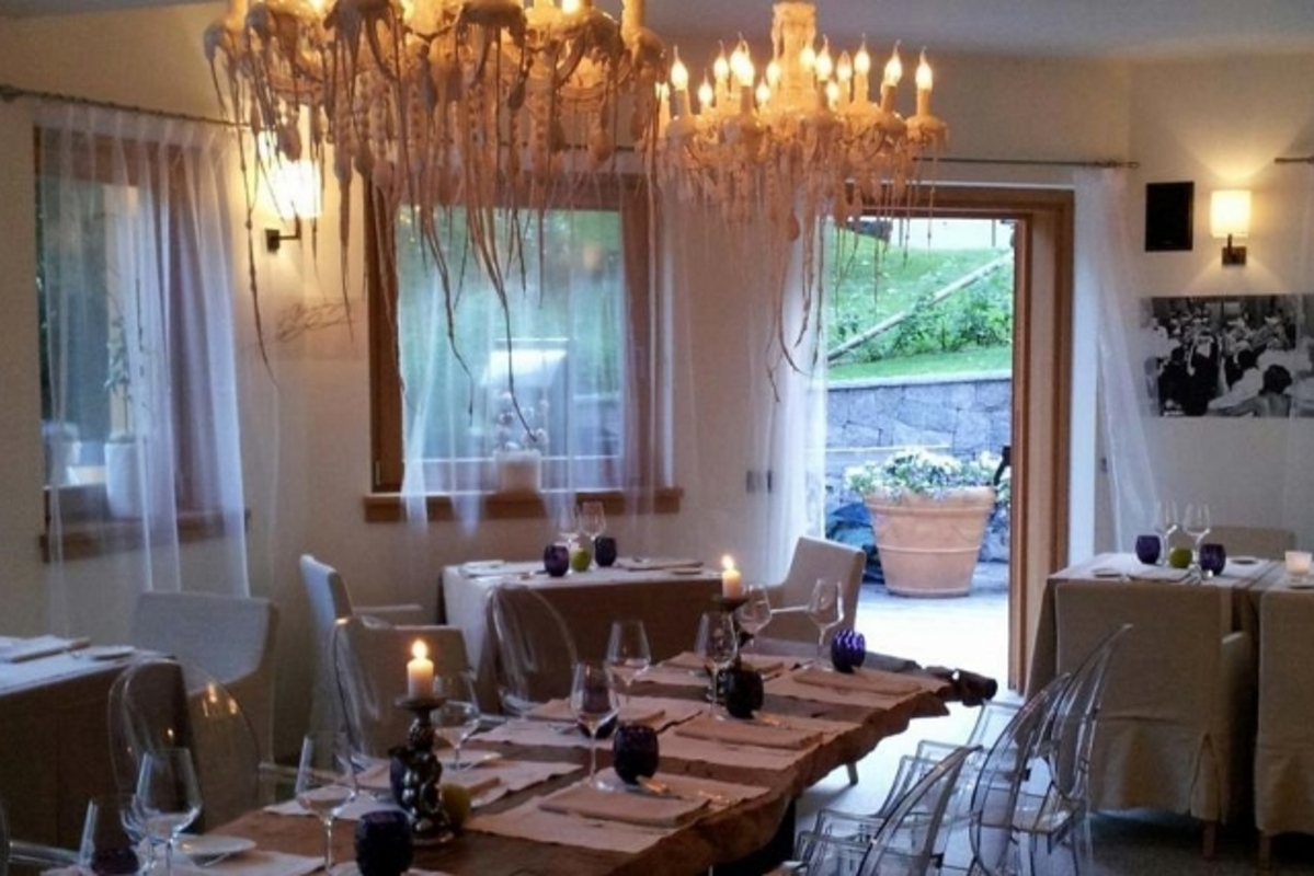 The reception area is rather unusual and escapes the stereotype of a hotel. The lounge with its large fireplace creates a very welcoming area where you can sit and relax amongst warm blankets to chat, read a book, sip a Marzemino or a cup of tea. The 'Stube da Tiz' is a warm nest of antique Trentino pine, where you can meet with interesting people or you can let yourself be tempted by our delicious mountain dishes. In the starred restaurant 'Deodat de Dolomieu' the fireplace is lit first thing in the morning and our guests are welcomed by the warm glow of the fire - guest choose either the Tasting Menu or eat a la carte. The main Bistro Restaurant is very popular amongst locals so booking a table is essential. Guests dine here on an a la carte basis.