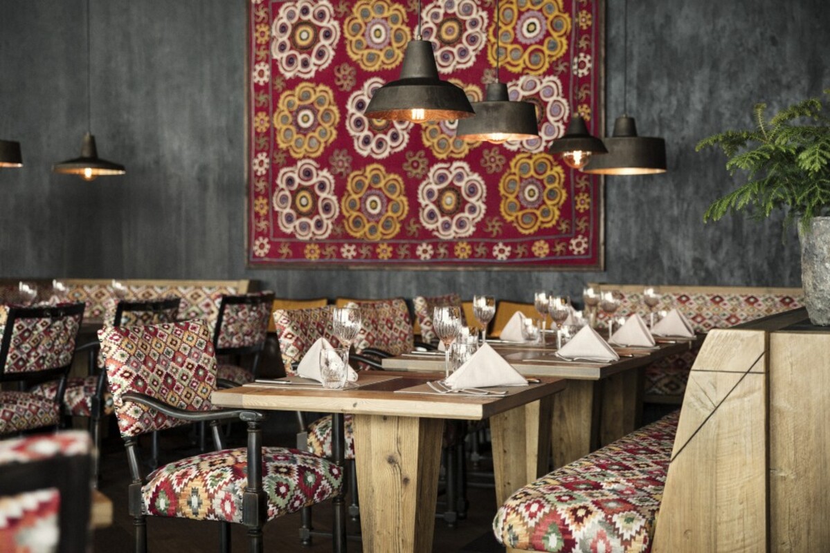 The Valsana opened December 2017 and offers a chic, modern alpine retreat. Inside the woodland-inspired cladding Aztec embroidery and hand-painted botanical murals interpose with rustic materials such as leather, smoked oak and untreated wood. Industrial finishes in iron and copper add a trendy note, alongside aviator egg chairs and sausage dog benches. The cosy and innovative interior is the work of the Swiss interior designer, Carlo Rampazzi, who also designed the group's other properties.
