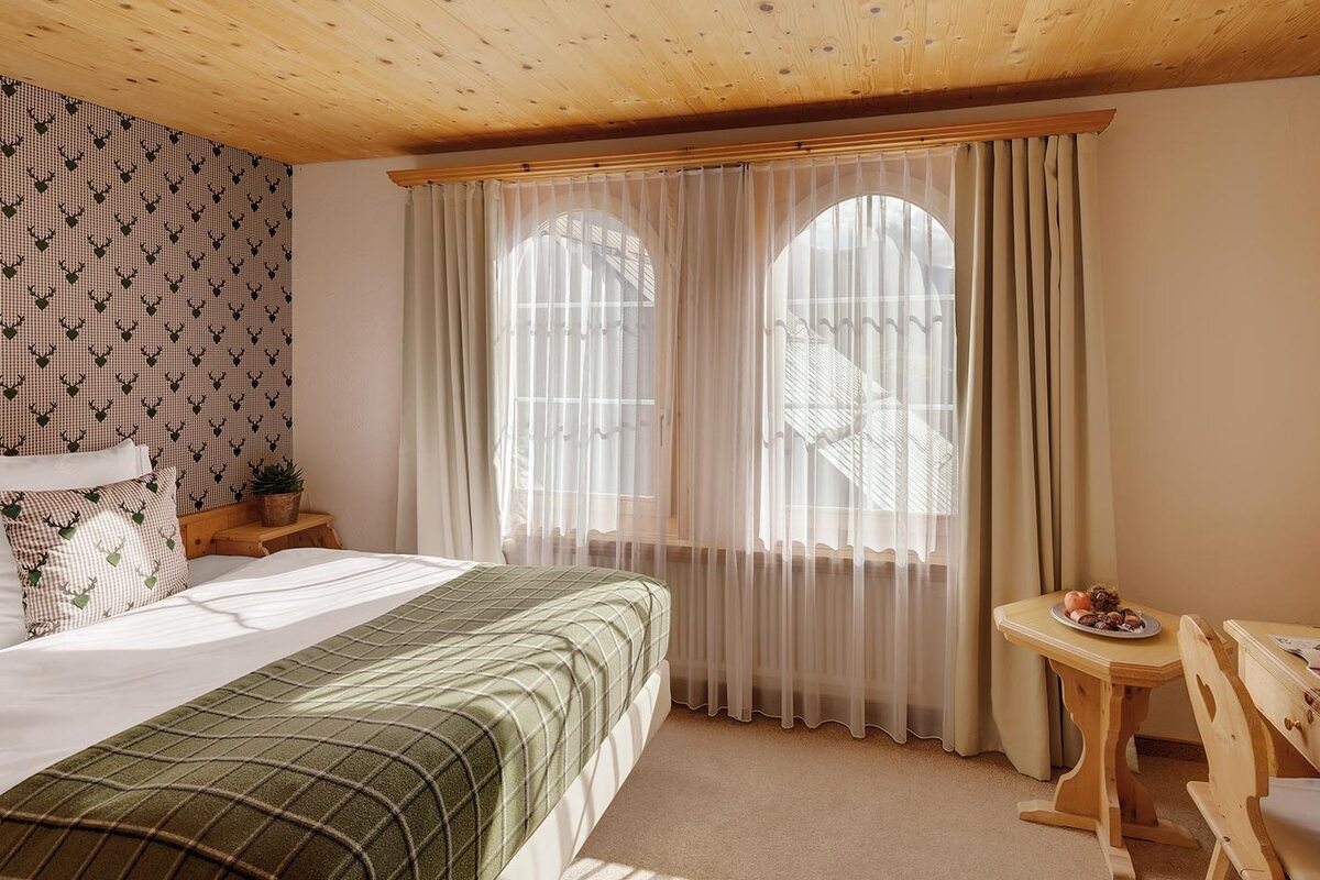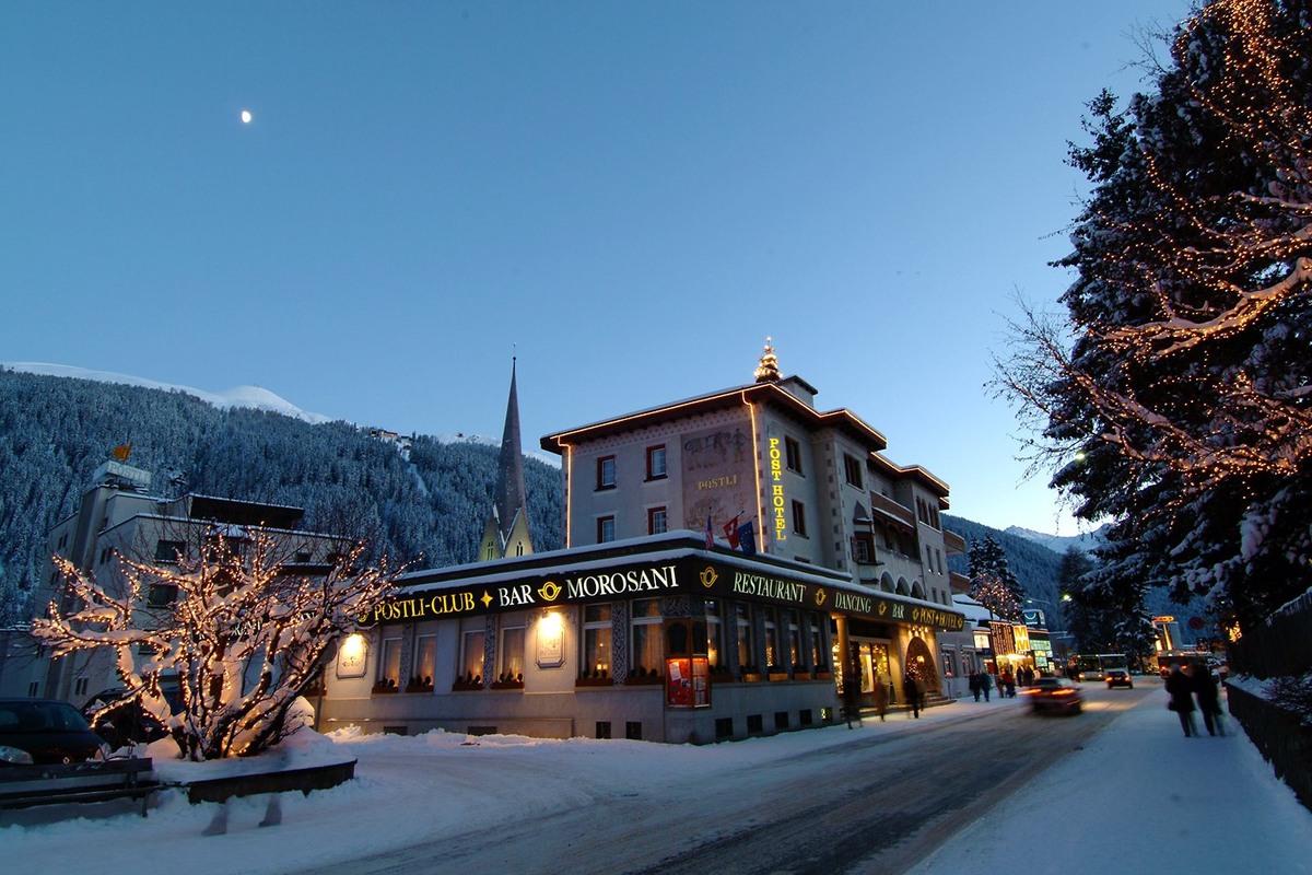 This is a first class hotel and typifies the warm hospitality that is everything you imagine of a traditional Swiss hotel. In the Morosani tradition, the comfort and wellbeing of the guests is the hotel's primary concern. The respected Postli restaurant (14 Gault-Millau points) is considered one of the most beautiful in Davos. Its style in Grison country elegance offers seating for eighty diners. The hotel is furnished and decorated in regional style with lots of wood panelling and beams, it has a warm, informal atmosphere. The bedrooms are large and very comfortable and the lounge is delightful - a real focal point for après-ski cakes and coffee beside the open fire. The hotel is very central; around five minutes' walk from the Jacobshorn and Strela lifts.