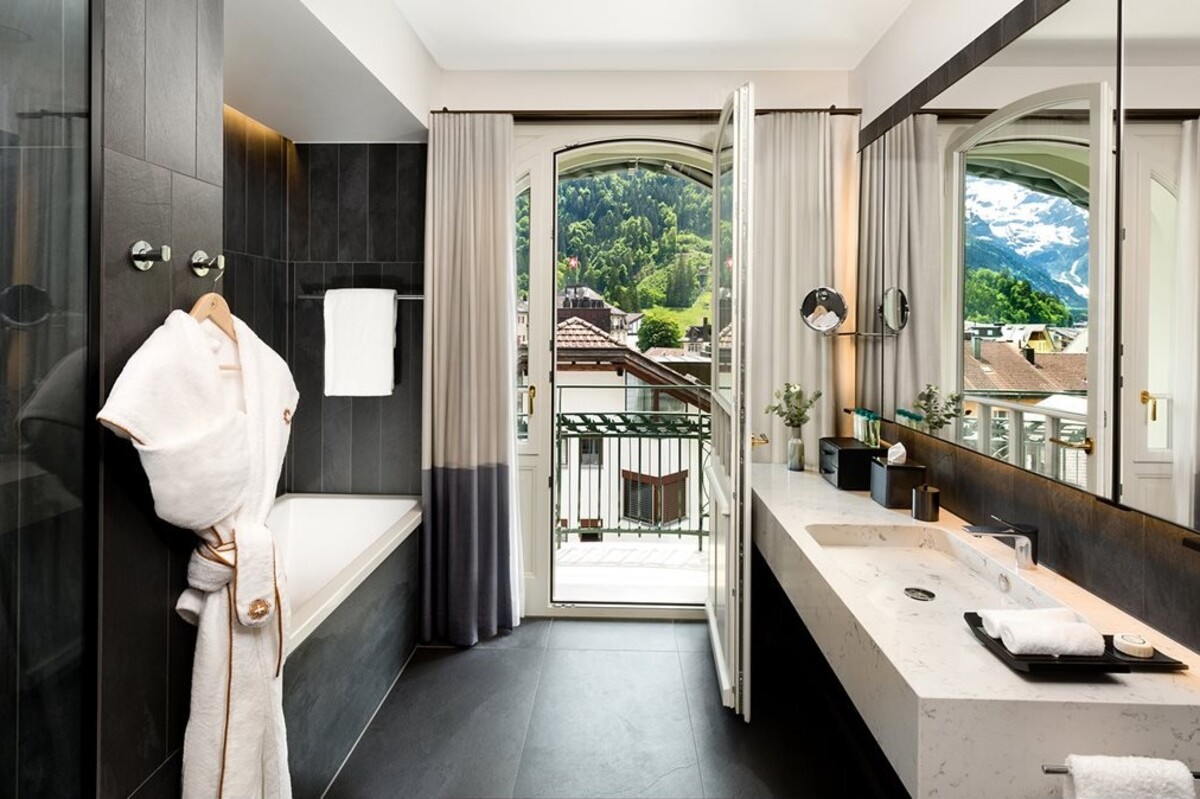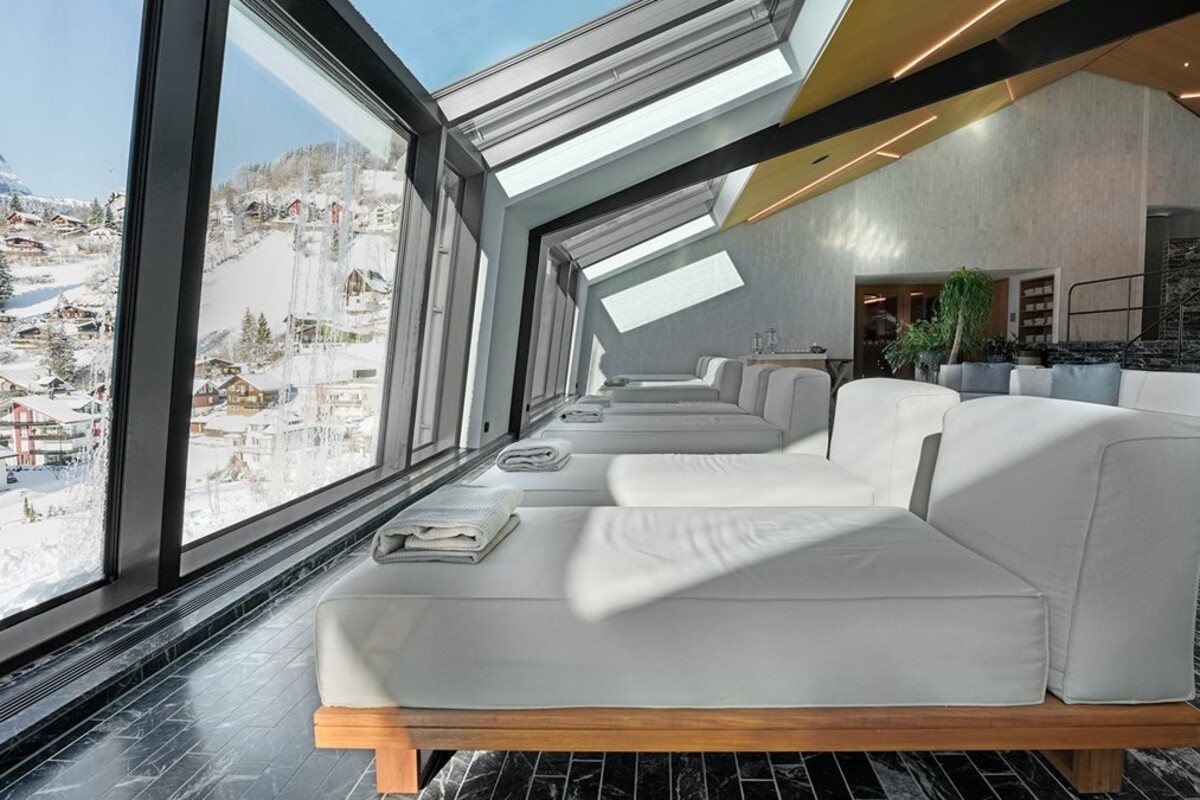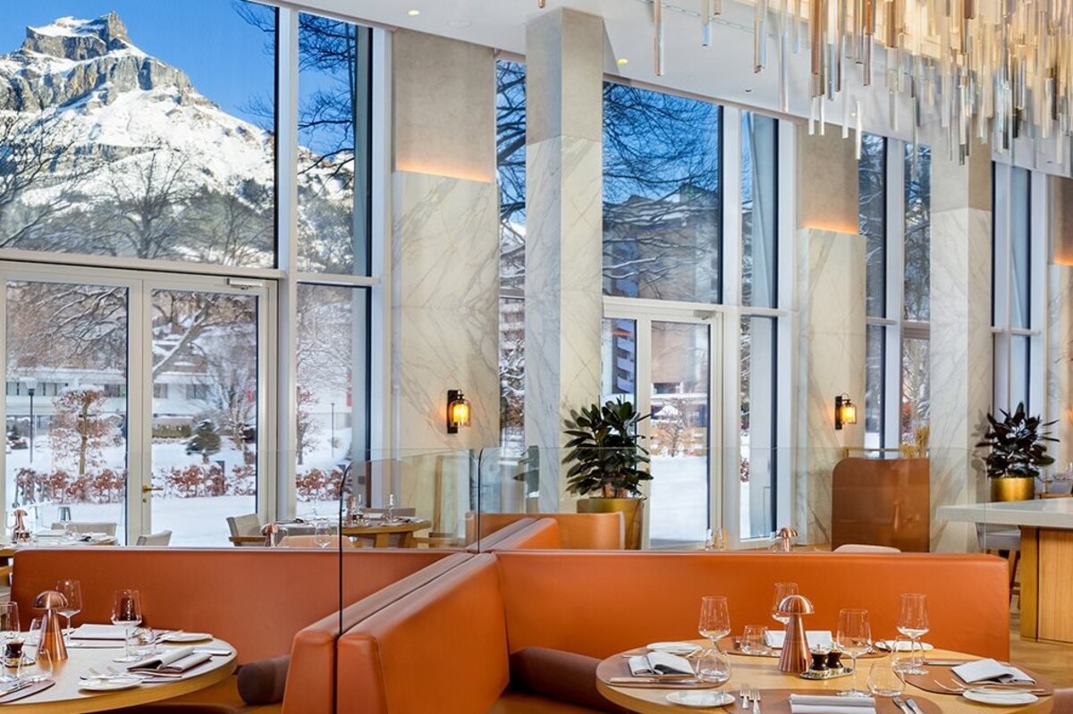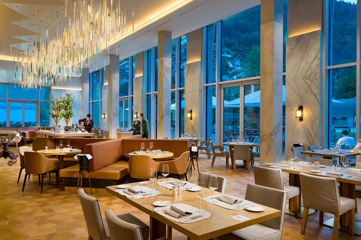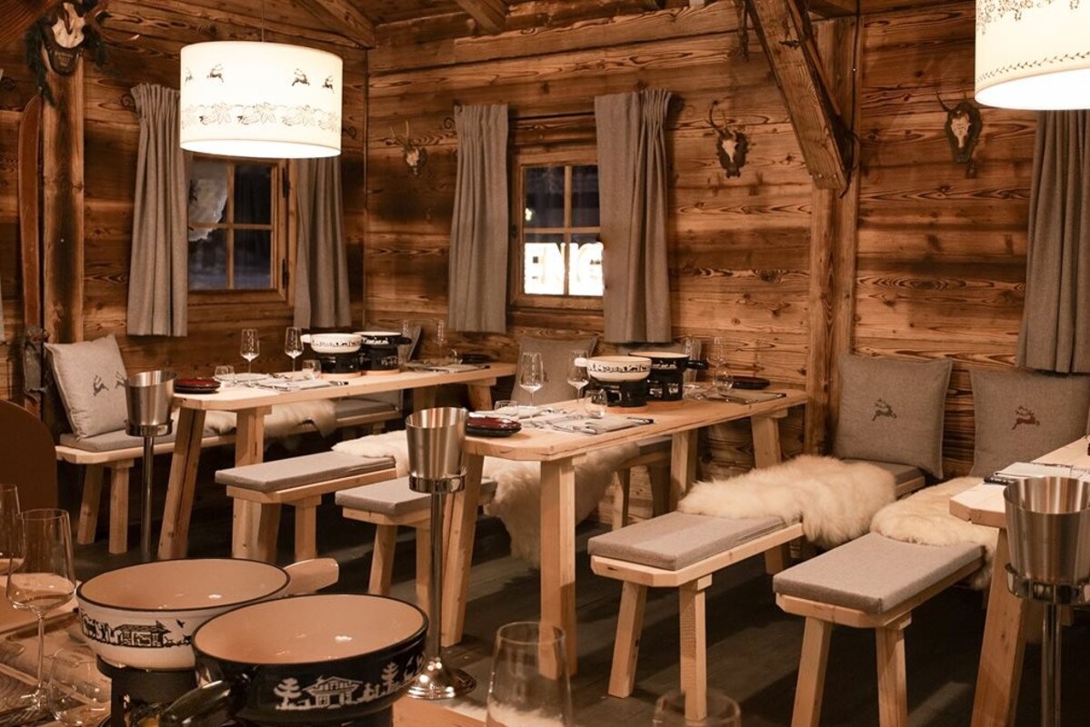 The hotel also includes the Cattani Restaurant, a Swiss culinary delight where the farm-to-table philosophy is practised to produce delicious meals. And the Palace Bar is the perfect place to end your evening where exquisite wines and cocktails are enjoyed by a cosy fire, discussing the day's adventures. In winter the hotel have a pop-up traditional Fondue restaurant called the Chalet Ruinart where they serve Swiss Mountain Winter classics, like raclette and fondue in a rustic, wooden chalet in the gardens of the hotel. The cheese comes from a local supplier in the town.