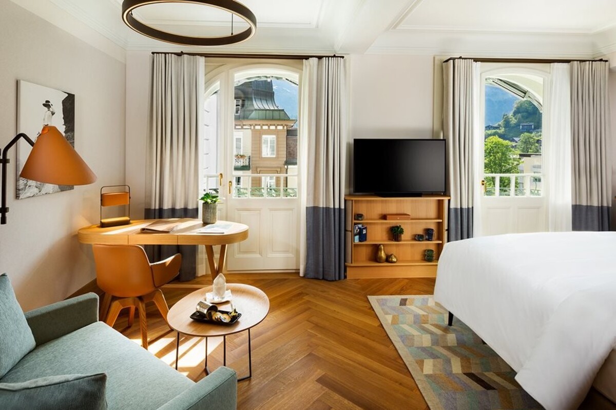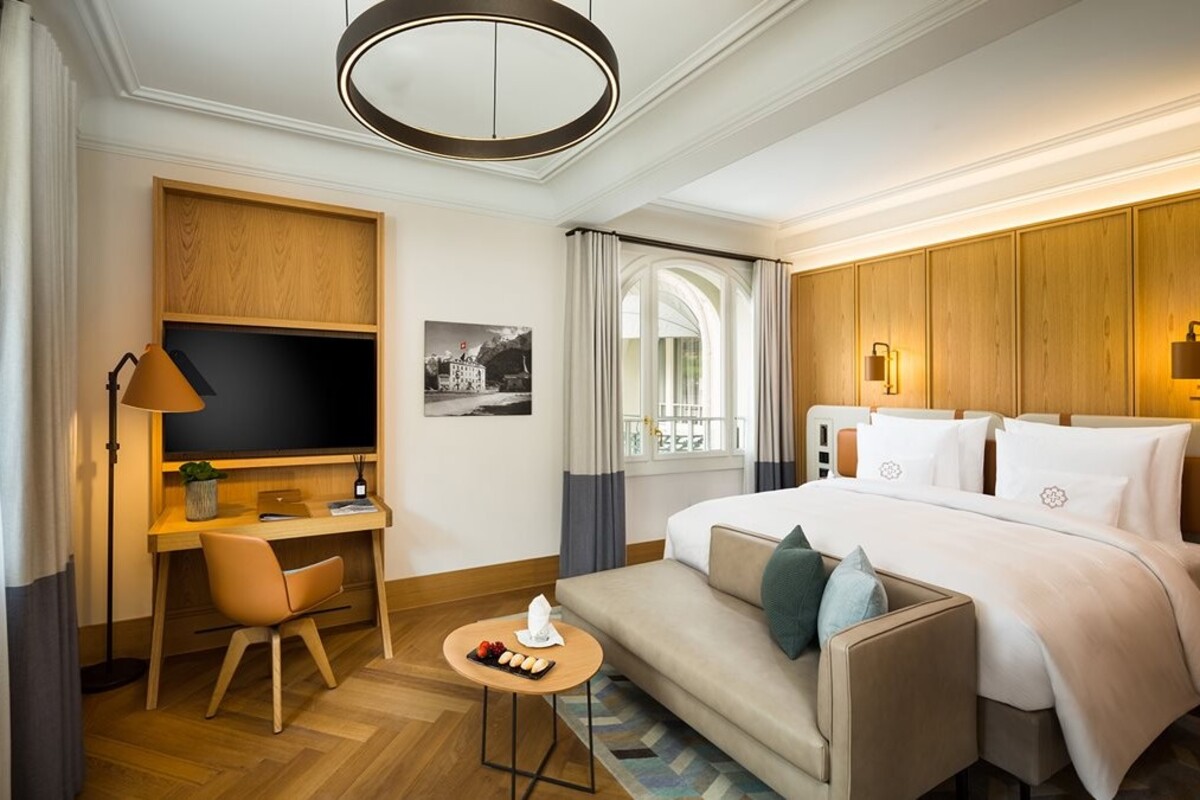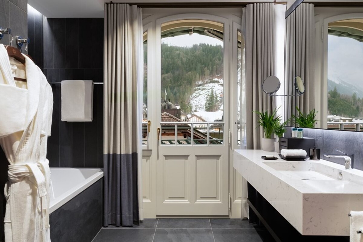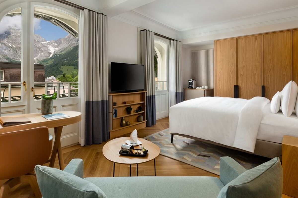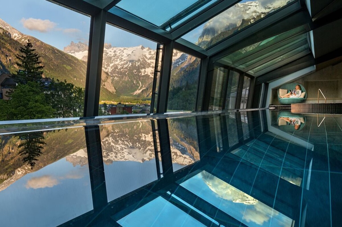 The hotel also includes the Cattani Restaurant, a Swiss culinary delight where the farm-to-table philosophy is practised to produce delicious meals. And the Palace Bar is the perfect place to end your evening where exquisite wines and cocktails are enjoyed by a cosy fire, discussing the day's adventures. In winter the hotel have a pop-up traditional Fondue restaurant called the Chalet Ruinart where they serve Swiss Mountain Winter classics, like raclette and fondue in a rustic, wooden chalet in the gardens of the hotel. The cheese comes from a local supplier in the town.