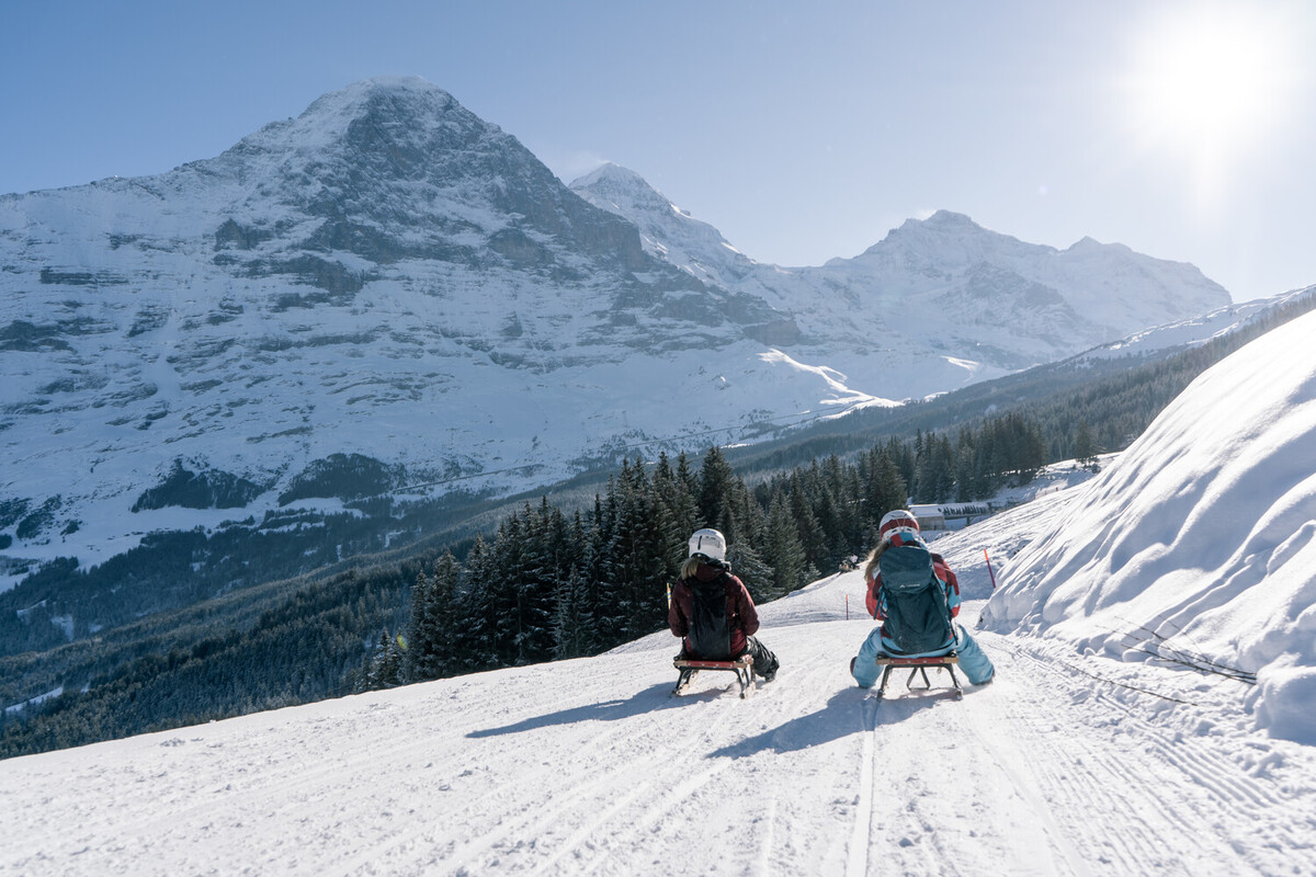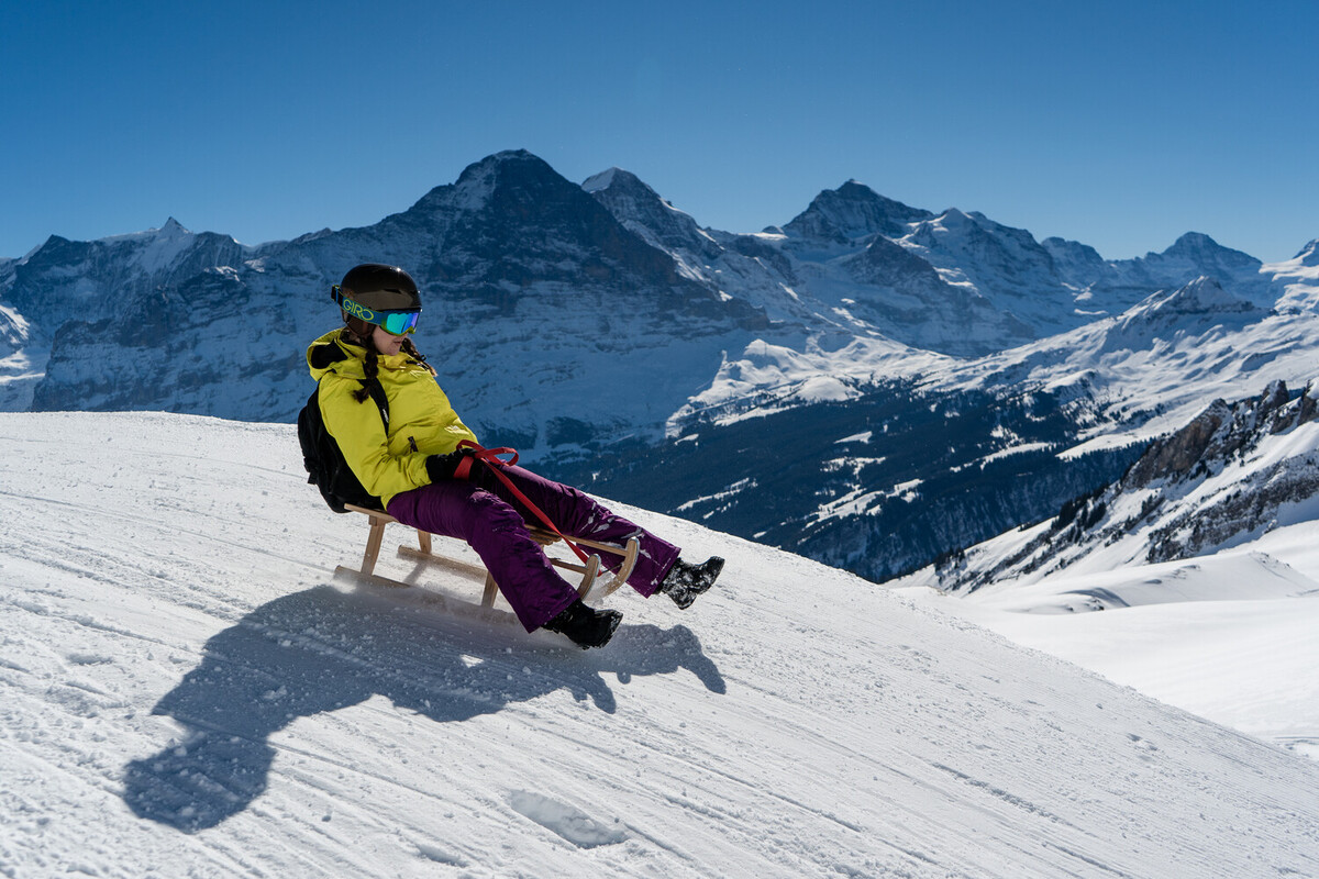 Getting skiing used to be a rather slow and lengthy process using the old train from Grund station which sits below the main resort at 944m altitude up to Kleine Scheidegg which sits at 2,061 metres. However, there are two brand new gondolas that leave the base station in Grindelwald and these take just 15 minutes to reach two separate high altitude ski areas. The cost of the V-cableway was not far off £400 million but the results make a spectacular improvement to the ski holiday experience when staying in Grindelwald. The newer of the two lifts, The Eiger Express, which opened in 2020 rises to almost 2,400 metres altitude and is truly state of the art. However, devotees of Grindelwald still say the leisurely mountain ascent using the old mountain train is one of the charms of Grindelwald. Sit back and relax, enjoy the amazing scenery (as good as anywhere) and let the train take the strain.